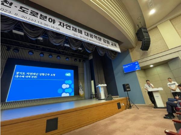 [한국뉴스타임=편집국] 경기도는 지난 30일 경기도청 북부청사 평화누리홀에서 하천과·도로안전과 전 직원 및 하천 공사 업무 관계자 등 100여 명을 대상으로 ‘하천?도로분야 대응역량 강화 교육’을 실시했다.