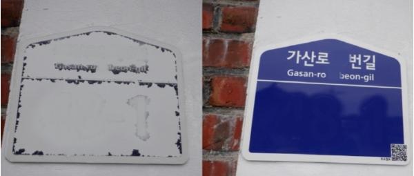 ‘노후 건물번호판 정비사업’은 2011년 도로명주소 시행 이후 햇빛 노출로 인한 빛바램, 탈색 등으로 훼손된 건물번호판을 정비하는 것으로, 정확한 도로명주소의 안내와 도시미관 개선을 위해 진행했다.