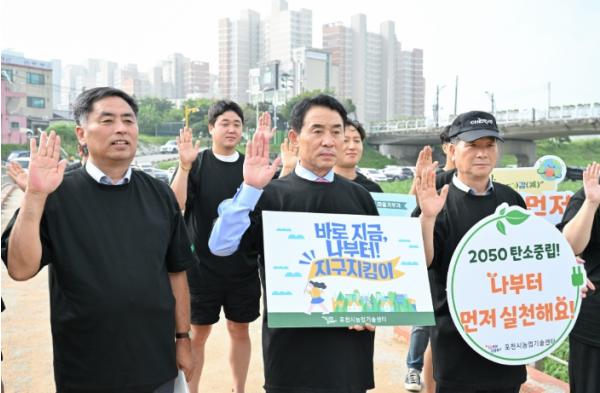 이번 행사는 4-H회원 및 내빈 21명이 참석한 가운데 탄소중립 실천 결의문을 낭독하고 포천천 주변의 쓰레기를 주우며 걷는 ‘플로깅’을 진행했다.