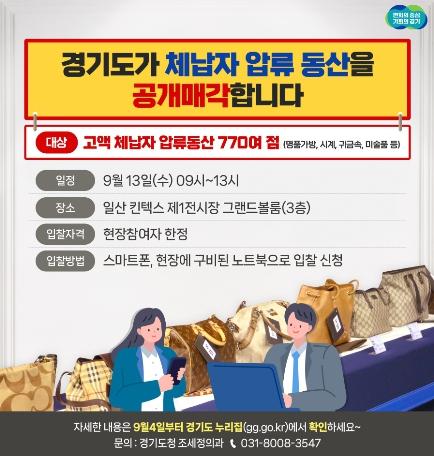 [한국뉴스타임=편집국] 경기도가 지방세 고액 체납자 가택수색을 통해 압류한 명품 시계, 가방 등 772점을 오는 13일 전북, 경북, 제주 등 다른 시도와 합동으로 공개 매각한다.