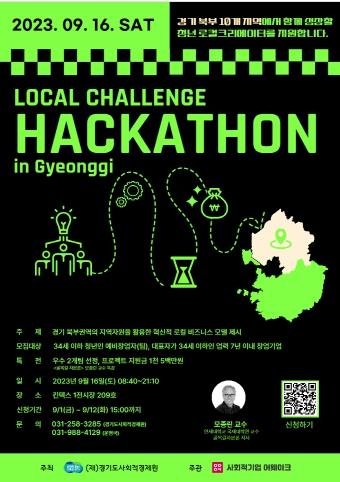 [한국뉴스타임=편집국] 경기도사회적경제원은 경기 북부권역(가평, 고양, 구리, 남양주, 동두천, 연천, 양주, 의정부, 파주, 포천)의 지역자원을 활용한 혁신적 로컬비즈니스모델 발굴을 위한 ‘2023년 로컬챌린지 해커톤(제한 시간 내 주제에 맞는 서비스 개발)’에 참여할 청년을 오는 12일까지 모집한다.