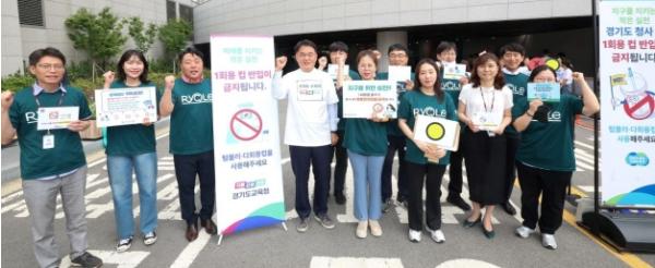 경기도교육청, 경기도청, 경기도의회는 6일 자원순환의 날을 맞아 일회용품 없는 경기융합타운 조성을 위해 지하 1층 출입구에서 합동 캠페인을 펼쳤다.