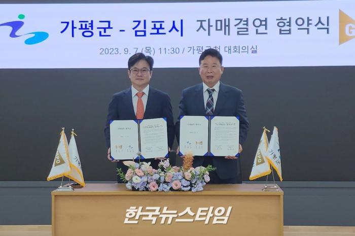 경기동부 관광의 거점도시인 가평군과 경기도 서부 성장발전의 핵으로 떠오르고 있는 김포시가 공동발전을 모색하기 위해 두 손을 맞잡았다.