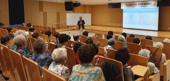 이번 인문학 강의는 지난 7월 관내 금곡초등학교 학생들을 대상으로 실시한 제1회 몽골의 역사 문화 강의를 뒤이어 진행됐으며, 관내 어르신 60여 명이 참석했다.