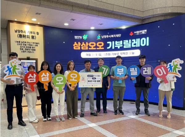 [한국뉴스타임=편집국] 남양주시는 지난 7일 기부자 명예의 전당‘삼삼오오 기부릴레이’의 제6호 주자로 별내면사무소 직원들이 참여했다고 밝혔다.