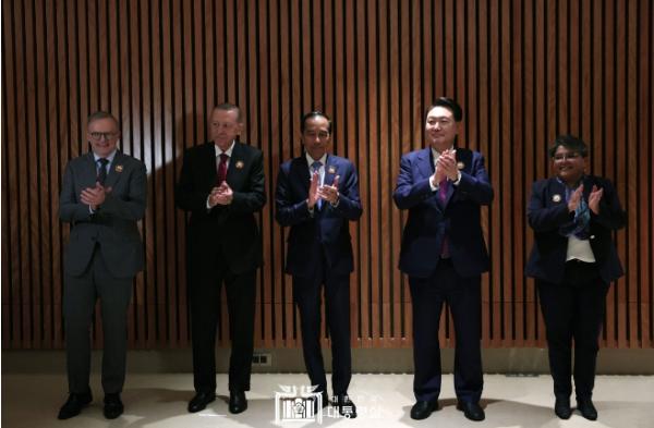 [한국뉴스타임=편집국] G20 정상회의 참석을 위해 인도 뉴델리를 방문 중인 윤석열 대통령은 오늘(9. 9 토, 현지시간) 오후 믹타(MIKTA) 회원국(우리나라, 멕시코, 인도네시아, 튀르키예, 호주) 정상과 회동했다.