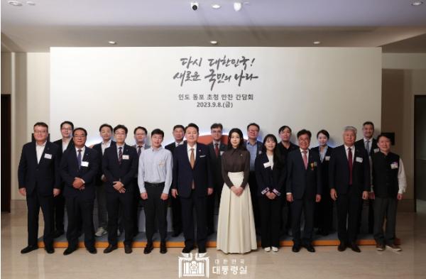 [한국뉴스타임=편집국] G20 정상회의 참석차 인도 뉴델리를 방문 중인 윤석열 대통령은 김건희 여사와 함께 오늘(현지시간 9. 8, 금) 저녁 현지 동포를 초청해 만찬을 겸한 간담회를 가졌다. 이번 간담회는 인도 전역에서 활발히 활동 중인 80여 명의 동포들이 참석했다.