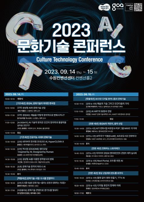 ‘인공지능(AI)이 확장한 문화기술의 세계’를 주제로 한 이번 콘퍼런스는 챗지피티(ChatGPT) 같은 생성 인공지능이 콘텐츠 산업계에 불러온 혁신을 조명하고 문화기술의 미래를 전망한다. 문화기술(Culture Technology)이란 문화콘텐츠에 디지털 기술을 적용해 유·무형의 부가가치를 높이는 기술이다.
