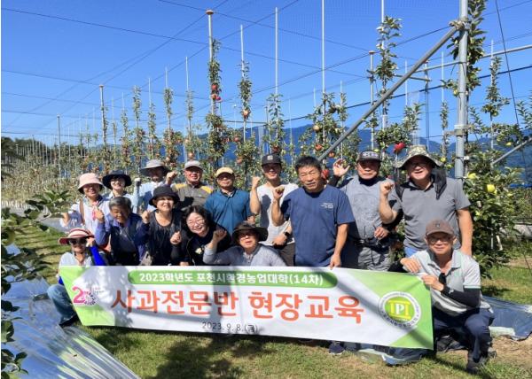[한국뉴스타임=편집국] 포천시는 지난 9월 8일 포천시 환경농업대학 사과전문반 학생들을 대상으로 화천군 선도농가에서 현장교육을 실시했다.