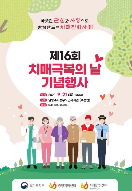 [한국뉴스타임=편집국] 남양주시는 제16회 치매 극복의 날을 맞아 오는 21일 수동면 남양주시동부노인복지관 및 진접 푸른물센터공원에서 남양주시민을 위한 다양한 체험 부스를 개최한다고 11일 밝혔다.