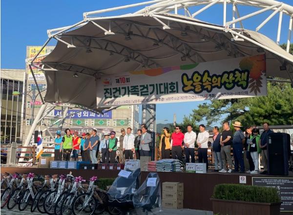[한국뉴스타임=편집국] 남양주시걷기연맹 진건읍지회는 지난 8일 진건퇴계원행정복지센터 내 테마쉼터 잔디광장에서 ‘제10회 진건 가족걷기대회’를 개최했다.