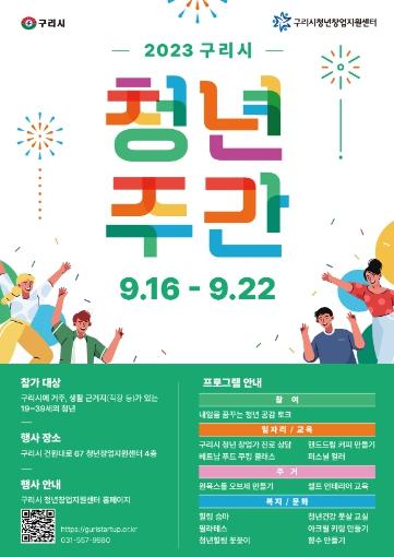 [한국뉴스타임=편집국] 구리시는 오는 9월 16일 청년의 날을 맞아 오는 16일부터 22일까지 구리시청년창업지원센터 등에서 ‘2023 구리시 청년주간’을 운영한다.