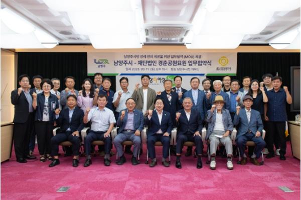 [한국뉴스타임=편집국] 남양주시는 11일 남양주시청 여유당에서 강원도 춘천시 서면에 위치한 (재)경춘공원묘원(이사장 최흥순)과 경춘공원묘원 내 남양주시민 전용묘역 조성 및 상호협력을 위한 업무협약을 체결했다고 밝혔다.