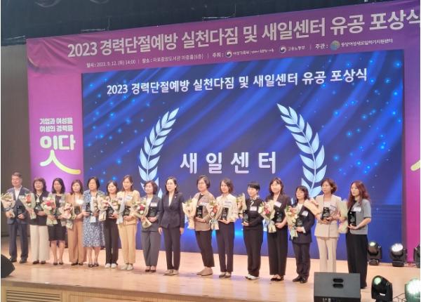 시상식은 12일 서울 마포중앙도서관에서 진행됐으며, 경력단절 취·창업 지원에 기여한 새일센터와 종사자, 민간기업, 지자체에게 장관표창 등이 수여됐다.