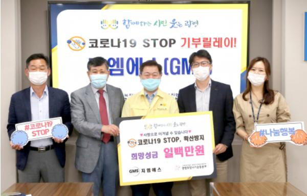 [KNT한국뉴스타임] 광명시 창업지원센터 소속 ‘지엠에스’(대표자 김민웅)가 13일 코로나19로 어려운 취약계층 지원을 위해 광명시사회복지협의회에 100만원을 전달했다.