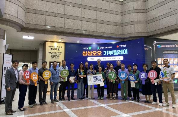 ‘삼삼오오 기부릴레이’는‘매월 3일과 13일, 5천 원 기부로 행복한 오늘’을 의미하며, 지역 내 나눔문화를 확산시키기 위해 남양주시청 각 부서와 지역 사회단체에서 참여하는 지목형 릴레이 기부캠페인이다.