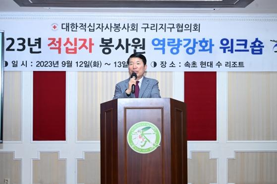 권임순 대한적십자사봉사회 구리지구협의회 회장은 “이번 행사를 빛내주기 위해 먼 속초까지 찾아와주신 내빈들께 먼저 감사의 말씀을 전한다.”라며, “봉사원들의 적극적인 활동이 우리 사회의 도움이 필요한 이들에게 따스한 희망을 안겨주는 큰 밑거름이 된다는 것을 잊지 않기를 바란다.”라고 당부했다.