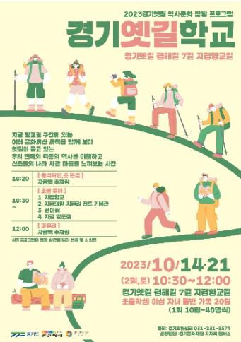 참가 신청은 경기문화재단 ‘지지씨멤버스를 통해 오는 9월 15일부터 선착순으로 접수한다. 10월 14일과 21일 등 2회 탐방에서 회당 10가족(40명 내외) 인원을 모집한다.