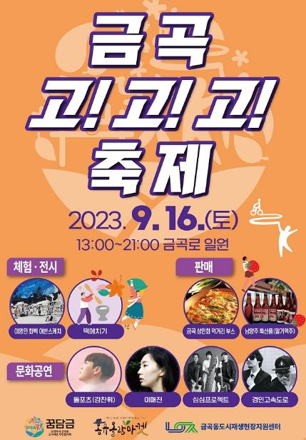 [한국뉴스타임=편집국] 남양주시는 오는 16일 금곡로 일대에서 금곡동 주민과 상인이 직접 기획하는 ‘금곡 고고고(Go! Go! Go!) 축제’가 다시 한번 개최한다고 밝혔다.