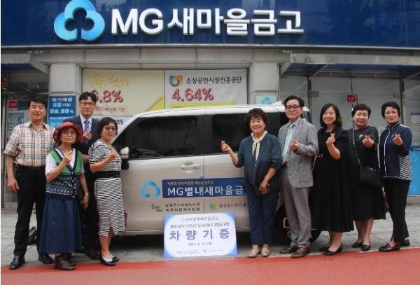 [한국뉴스타임=편집국] 남양주시 별내면 소재 MG별내새마을금고(이사장 남경우)는 지난 14일 사회복지 업무에 필요한 2천만 원 상당의 차량을 남양주시 사회복지관 북부희망케어센터(센터장 전정수)에 기부했다.