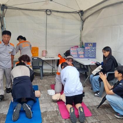 주요내용으로는 ▲심정지 환자에 대한 심폐소생술 실습 ▲자동심장충격기 사용법 ▲기도폐쇄 환자 발생 시 하임리히법을 적용한 응급처치 등이다.