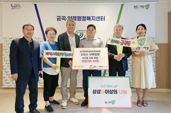 조성연 금곡양정행정복지센터장은 “물가상승 등으로 힘든 시간을 보내고 있음에도 이웃과의 나눔을 멈추지 않고 따뜻한 마음을 베풀어 주신 김정수 부위원장님께 깊은 감사를 드린다.”라고 전했다.