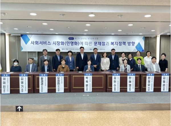 [한국뉴스타임=편집국] 박옥분 경기도의원(보건복지위원회, 더불어민주당, 수원2)은 15일 수원특례시 장안구청 대회의실에서 ‘사회서비스 시장화(민영화)에 따른 문제점과 복지정책 방향’이라는 주제로 포럼을 개최하여 좌장을 맡아 정책 대안 마련을 모색했다.