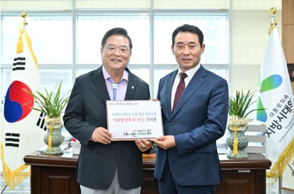 [한국뉴스타임=편집국] 포천시는 19일 백영현 포천시장이 지방시대위원회 우동기 위원장을 만나, 지방자치 실현 및 국가균형발전 정책을 논의하고 포천시 민관군 드론 첨단방위산업단지 기회발전특구 지정 등을 건의했다고 밝혔다.