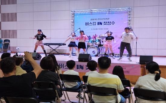 ‘버스킹in찾청수’는 청소년들의 꿈과 재능을 맘껏 발휘할 수 있는 노래, 포크음악, 힙합, 연주, 댄스 등 소규모 버스킹 공연 활동이다.