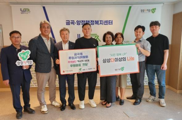 [한국뉴스타임=편집국] 남양주시 금곡양정행정복지센터는 지난 18일 추석 명절을 맞아 주민자치위원회가 금곡동지역사회보장협의체에 후원물품(햄 세트) 50개를 지정 기탁했다고 밝혔다.