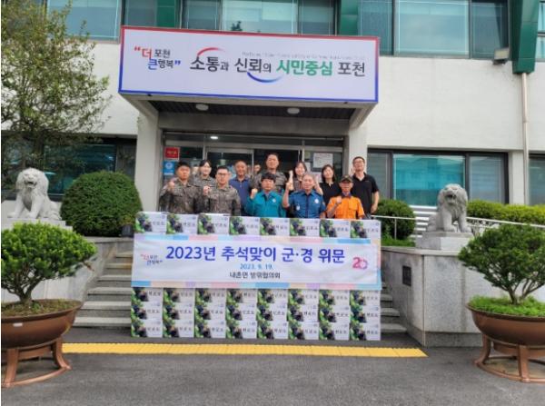 내촌면 방위협의회는 매년 설과 추석명절 2회에 걸쳐 지역방위와 치안질서 확립, 대민지원활동에 적극적으로 노력하고 있는 군장병과 경찰, 소방 등을 대상으로 격려해오고 있으며, 이번 위문에는 고장 특산품인 포도 57박스를 준비해 전달했다.