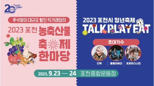 [한국뉴스타임=편집국] 포천시는 오는 9월 23일부터 24일까지 이틀간 포천종합운동장에서 ‘2023년 포천 농축산물 축제’와 ‘제4회 포천시 청년축제’를 개최한다고 밝혔다. 오곡백과가 무르익고 오색빛깔 단풍이 물드는 가을, 포천의 매력을 오감으로 느낄 수 있는 행사를 소개한다.