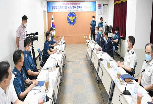 [KNT한국뉴스타임] 윤화섭 안산시장은 13일 안산상록경찰서에서 열린 ‘안전한 스마트치안 도시’ 업무 협약식에 참석해 경찰·소방 등 관계기관과 함께 시민의 안전을 위해 적극 노력하기로 힘을 모았다.