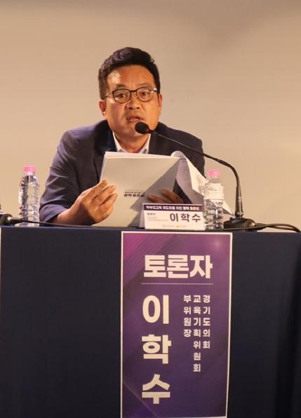 [한국뉴스타임=편집국] 경기도의회 교육기획위원회 이학수 의원(국민의힘, 평택5)이 9월 21일 ‘학부모교육 제도화를 위한 정책 토론회’의 토론자로서 ‘교육공동체 구성을 위한 학부모교육 참여 확대 방안 필요’에 대한 토론을 펼쳤다.