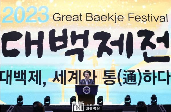 [한국뉴스타임=편집국] 윤석열 대통령은 9월 23일 저녁 충청남도 공주시 금강신관공원에서 열린 2023 대백제전 개막식에 참석했다.