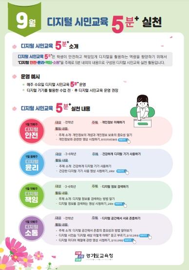 9월 실천 활동은 ▲디지털 안전으로 개인정보 이해하기 ▲디지털 윤리로 건강하게 디지털 기기 사용하기 ▲디지털 책임으로 디지털 정보 검색하기 ▲디지털 소통으로 디지털 공간에서 존중하기이다.