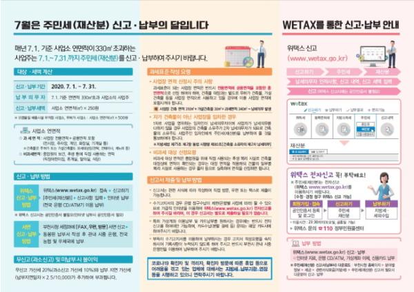 우종선 세정과장은 “코로나19 장기화에 따른 경기침체로 모두가 어려운 상황이지만, 감염병 예방과 이로 인한 피해 산업 지원 등을 위한 재원 확보를 위해 성실히 신고·납부해주길 바란다”고 당부했다.