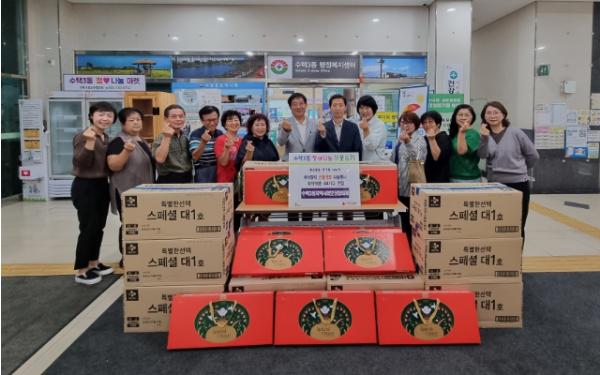 [한국뉴스타임=편집국] 구리시 수택3동 행정복지센터는 지난 21일 추석 명절을 맞아 관내 저소득 취약계층을 위해 수택3동 지역사회보장협의체로부터 햄선물 세트 44박스(195만 원 상당), 바르게살기운동 수택3동위원회로부터 식료품 세트 20박스를 전달받았다.