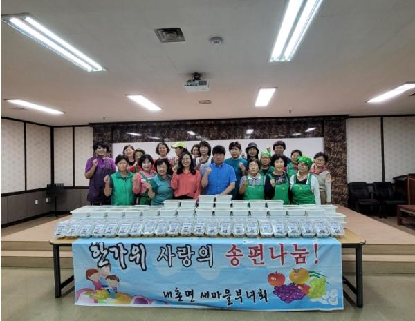 [한국뉴스타임=편집국] 내촌면 남녀 새마을지도자협의회는 지난 22일 추석 명절을 맞아 관내 어려운 이웃과 어르신을 위한 사랑의 송편 나눔 행사를 실시했다.