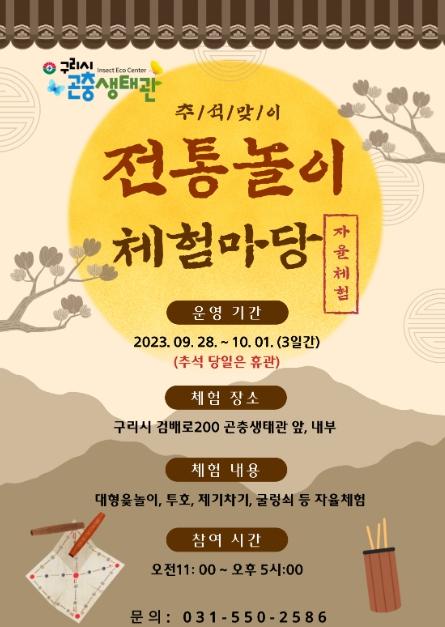 추석 당일을 제외한 연휴 3일 동안(9. 28., 9. 30., 10. 1.) 곤충생태관을 방문한 시민들이 곤충 관람과 함께 민속 전통놀이를 체험하며 가족 간의 정과 추억을 쌓을 수 있도록 곤충생태관 앞마당에 대형 윷놀이, 투호, 굴렁쇠, 제기 등을 비치할 예정이다.