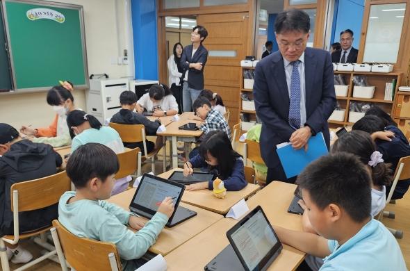 도교육청 이경희 제1부교육감은 25일 김포 솔터초등학교를 방문해 하이러닝을 활용한 교육활동을 참관하고 현장 의견을 청취했다.