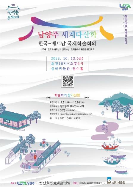 [한국뉴스타임=편집국] 남양주시는 제37회 정약용 문화제 연계 프로그램이자 남양주시 세계다산학 학술프로그램인 ‘한국-베트남 국제학술회의’를 내달 13일 실학박물관 열수홀에서 개최한다고 26일 밝혔다.