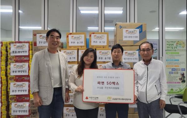 [한국뉴스타임=편집국] 남양주시 오남읍(읍장 이석찬)은 25일 오남읍 주민자치위원회에서 지역 내 취약계층을 위한 라면 50박스를 전달했다고 26일 밝혔다.