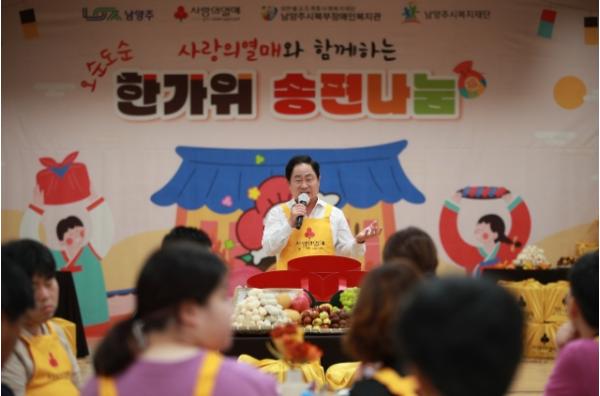 이날 행사에서는 주광덕 남양주시장을 비롯한 사회복지공동모금회 아너소사이어티(1억원 이상 고액 기부자), 남양주시 고액 기부 프로그램인 ‘평온(溫)한 기부’ 회원, 복지관 이용자 등 50여 명이 참여한 가운데 장애인 이웃들과 나눌 오색 송편을 빚는 시간을 가졌다.