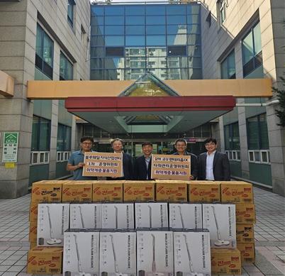 [한국뉴스타임=편집국] 구리시는 지난 22일 구리시 갈매동 소재 갈매 금강펜테리움IX 타워관리 운영위원회와 남양주 다산동 블루웨일 지식산업센터 1차 운영위원회로부터 1인 세대 취약계층을 위한 무선 밀걸레 청소기(200만원 상당)와 라면 40박스를 후원받았다.