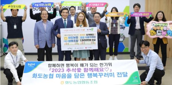 [한국뉴스타임=편집국] 남양주시 화도농업협동조합은 지난 25일 민족 대명절 추석을 맞이해 사회복지관 동부희망케어센터에 1,500만 원 상당의 식품꾸러미를 후원했다.