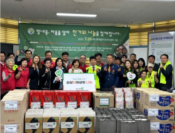 [한국뉴스타임=편집국] 남양주시 평내동은 평내동 지역사회보장협의체에서 26일 한가위를 맞아 평내동 주민자치회를 비롯한 관내 9개 단체와 함께 취약계층 나눔 활동을 실시했다고 밝혔다.