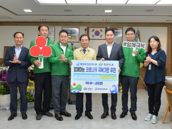하이트진로(주)(대표 김인규)는 지난 13일 코로나로 어려운 이웃에게 사용해달라며 라면100박스 및 석수100박스(금 2백만 원 상당)를 포천시에 전달했다.