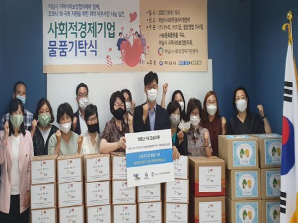 [KNT한국뉴스타임] 하남시 관내 사회적경제기업들은 지난 8일 코로나19로 인해 어려움을 겪고 있는 취약한 이웃들에게 전달해달라며 하남시 지역사회보장협의체에 930만원 상당의 물품을 기탁했다.