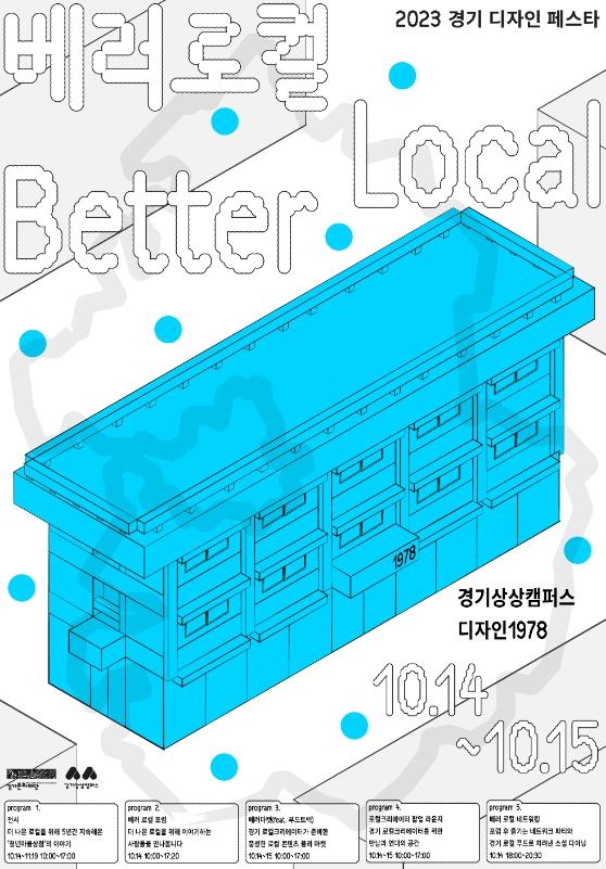 '베러 로컬'은 ‘2021 경기 디자인 페어 '굿즈굿즈'’와 ‘2022 경기 디자인 축제 '디자인=∞(무한대)'’에 이은 경기상상캠퍼스의 세 번째 경기도 디자인 축제다. 올해 축제는 최근 경기도뿐만 아니라 전국적으로 새로운 창작 흐름을 만들고 있는 ‘로컬 크리에이터’에 주목한다. 이에, ‘더 나은 로컬’을 위한 고민과 연대의 뜻을 내포하는 '베러 로컬'을 슬로건 및 축제명으로 내세웠다.